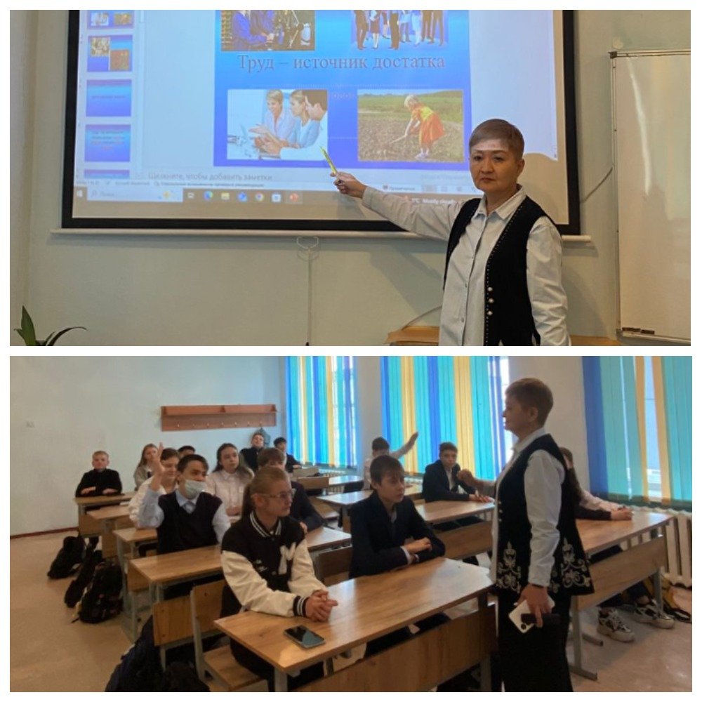2025 жылдың 29 қыркүйегінде 7-сынып оқушылары арасында "Еңбекқорлық және оның табысқа әсері" тақырыбында сынып сағаты өткізілді.Балалар өмірде мақсат қою қажеттілігі, нәтижеге жету үшін адамның қажетті қасиеттері туралы талқылады.